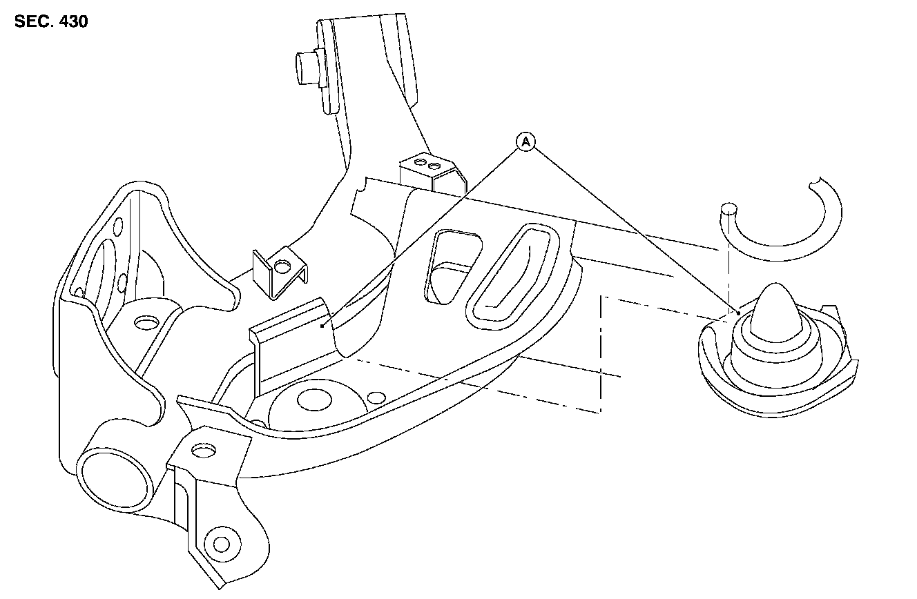 ^ When installing rear spring rubber seat, be sure that the flat areas (A) are aligned.