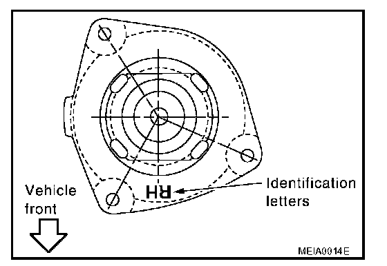 4. Remove cap, strut mounting insulator, strut mounting bearing, coil spring with tool, dust cover, bound bumper, and coil spring insulator from strut.