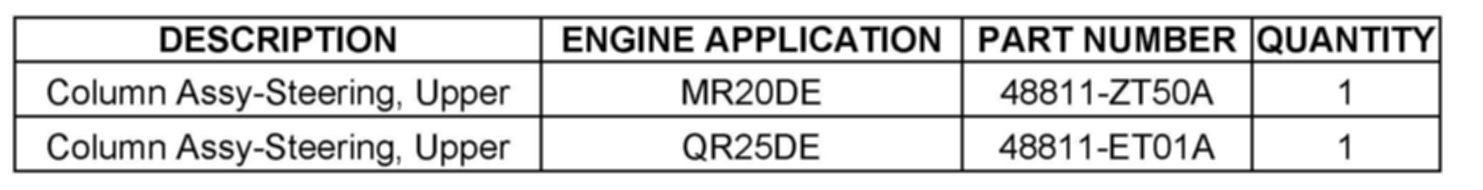 2007-2011 SENTRA; STEERING COLUMN SERVICE