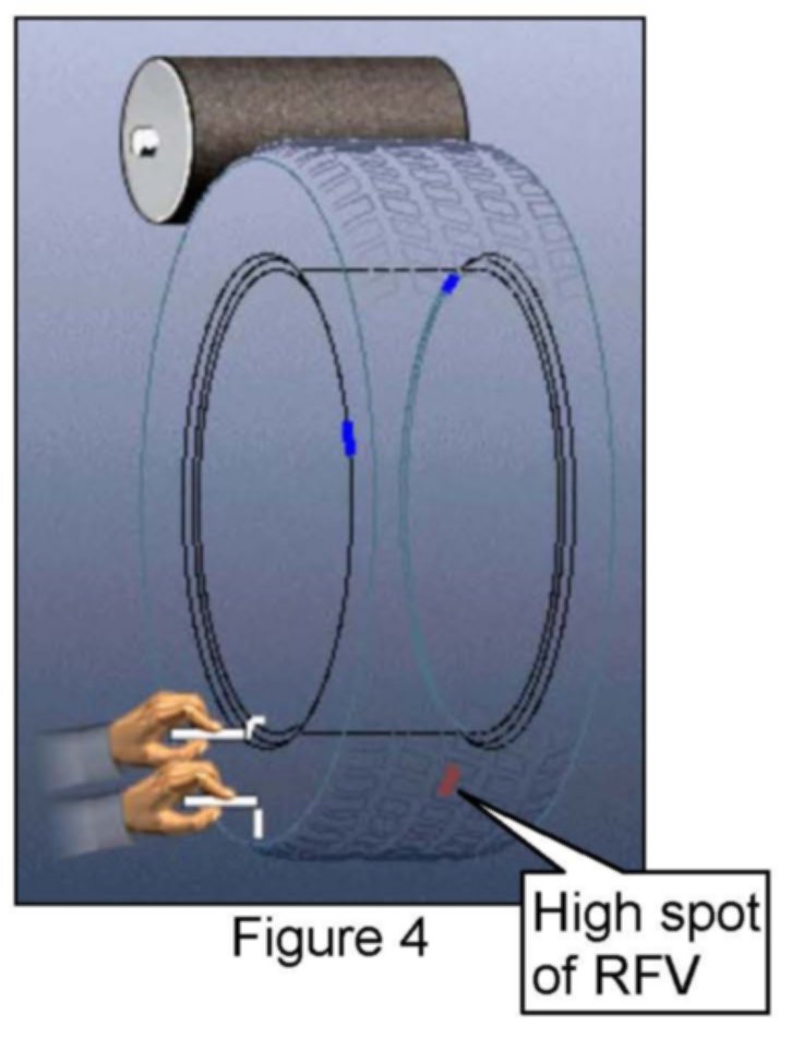 1. Mark the tire at the high spot of RFV, and then at the same location on the wheel (see Figure 4).