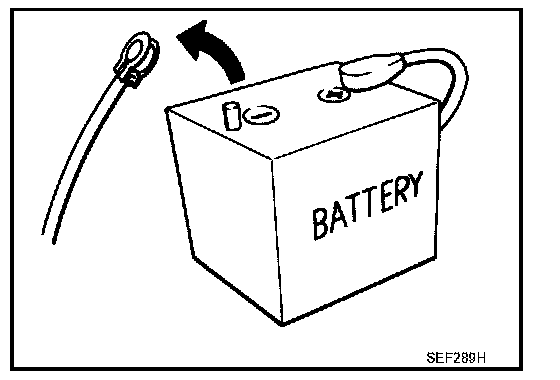 ^ Before connecting or disconnecting the TCM harness connector, turn ignition switch OFF and disconnect negative battery cable. Because battery voltage is applied to TCM even if ignition switch is turned OFF.
