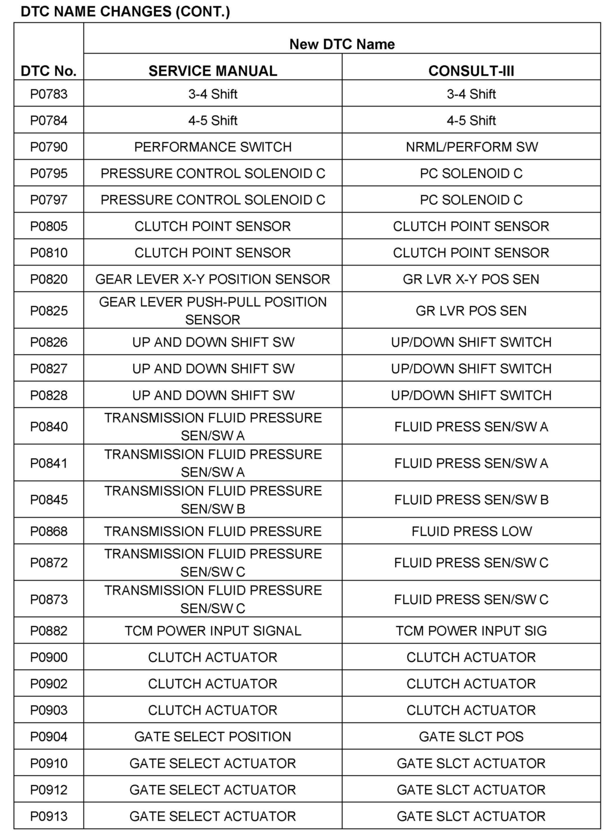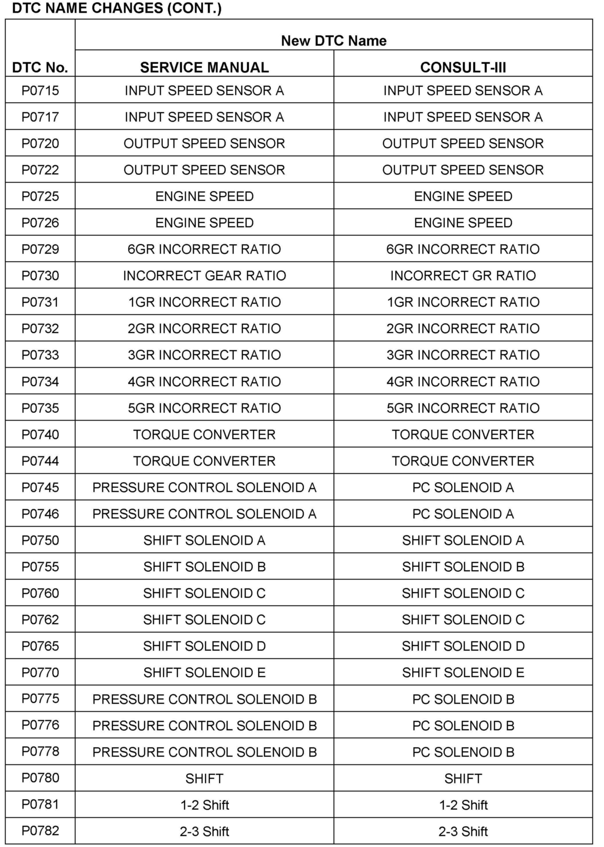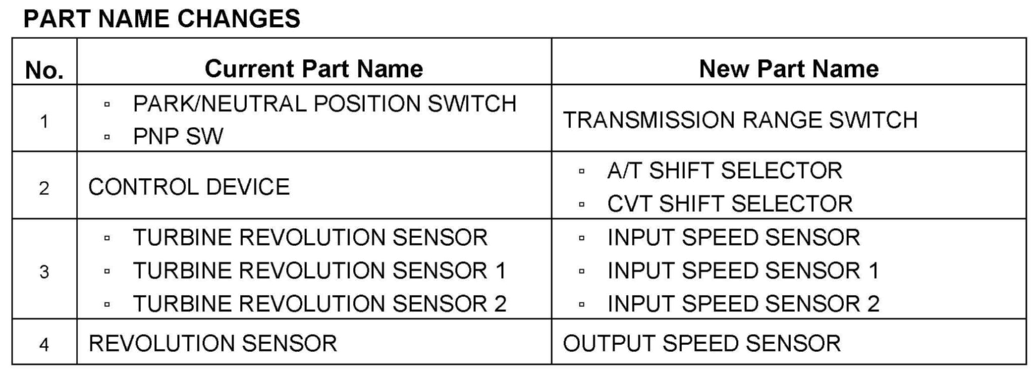 UPDATE TO AT/CVT TERMINOLOGY IN SERVICE MANUALS