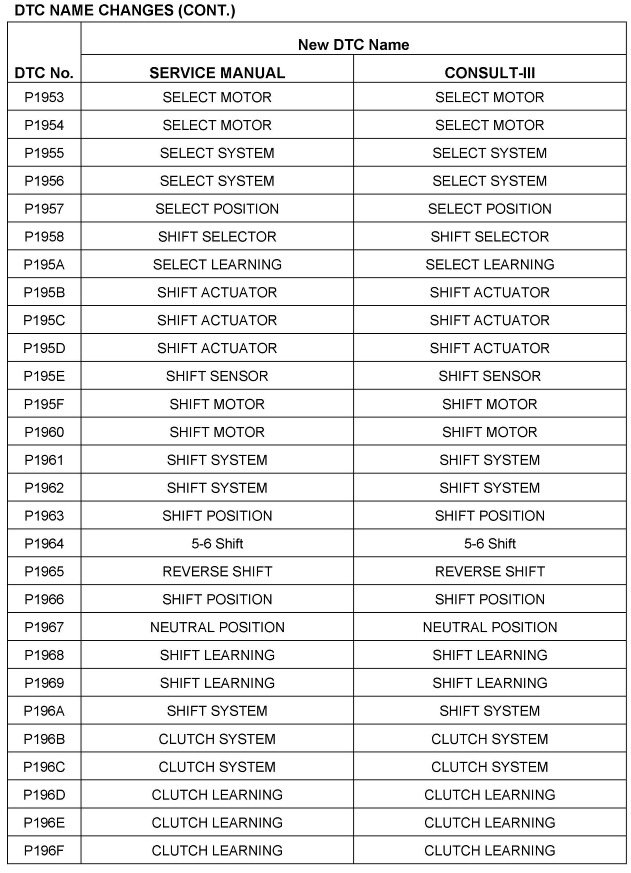 The terminology for Automatic Transmission ("AT") and Continuously Variable Transmission ("CVT") in the Nissan Service Manuals is being updated to reflect the terminology in SAE J1930 and J2012.
