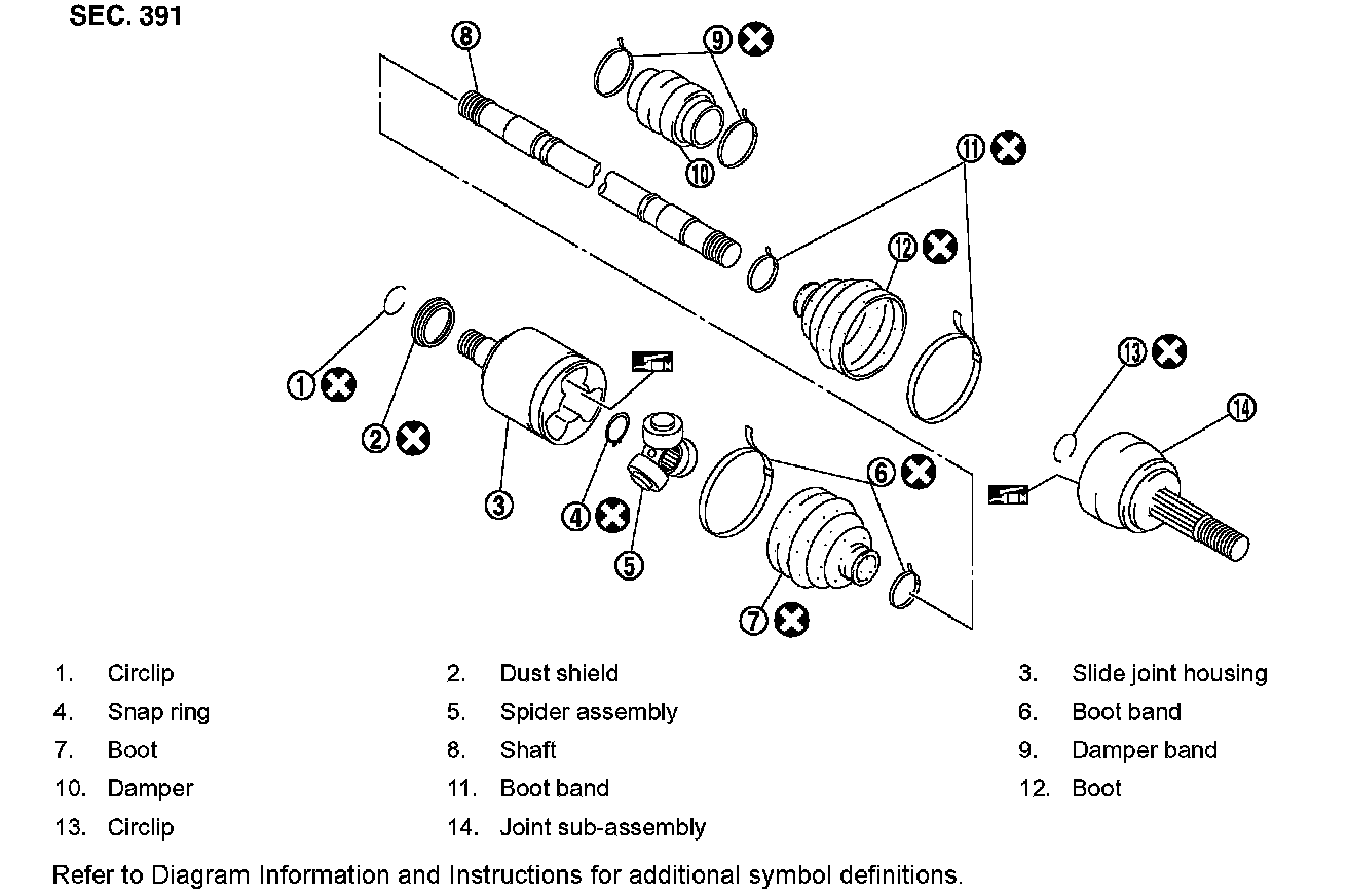 CAUTION: If there are any irregular conditions of joint sub-assembly components, replace the entire joint subassembly.