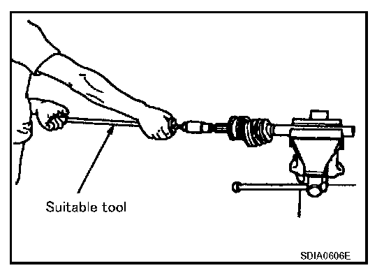 3. Screw a sliding hammer or suitable tool 30 mm (1.18 in) or more into threaded part of joint sub-assembly. Pull joint sub-assembly out of shaft.