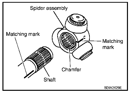 3. Align matching mark on spider assembly with matching mark on shaft and install spider assembly with chamfer facing shaft.