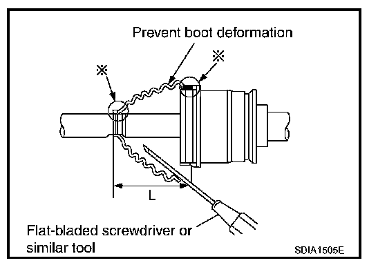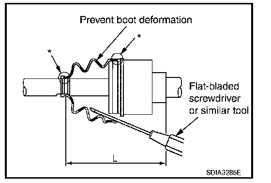 8. Make sure boot installation length L is the length specified below. Insert a flat-bladed screwdriver or similar tool into the large end of boot. Bleed air from boot to prevent boot deformation.