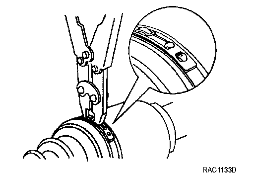 9. Rotate the joint sub assembly and confirm that the boot position is correct. If boot position is not correct, remove the boot bands, reposition the boot and install new boot bands.
