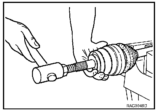 ^ Align sliding hammer or suitable tool and drive shaft then remove joint sub-assembly by pulling directly.