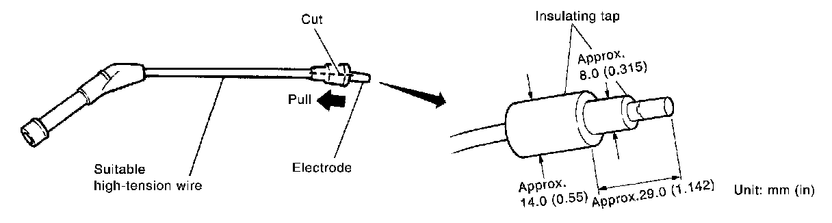 2. Connect No. 1 ignition coil (3) and No. 1 spark plug with suitable high-tension wire (1) as shown, and attach timing light (2) clamp to this wire.