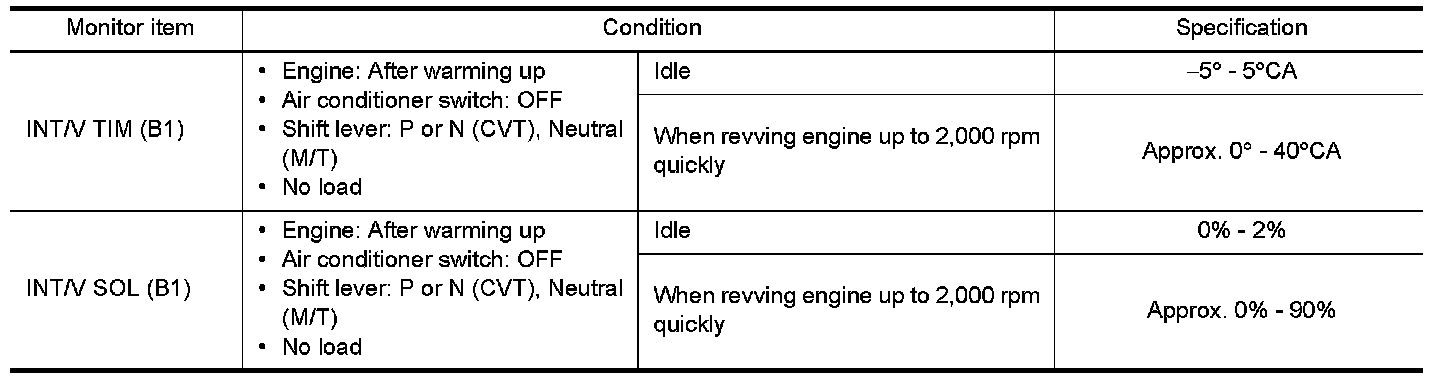 If NG, replace intake valve timing control solenoid valve.