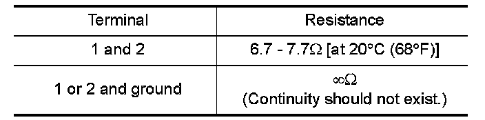 2. Check resistance between intake valve timing control solenoid valve as follows.