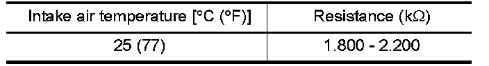 1. Check resistance between intake air temperature sensor (1) terminals 5 and 6 under the following conditions.