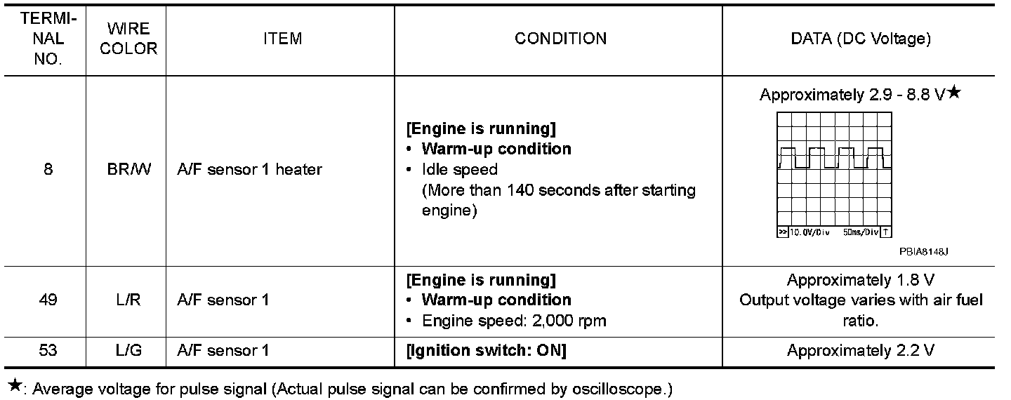 3. Check voltage between A/F sensor 1 terminal 4 and ground with