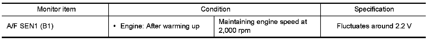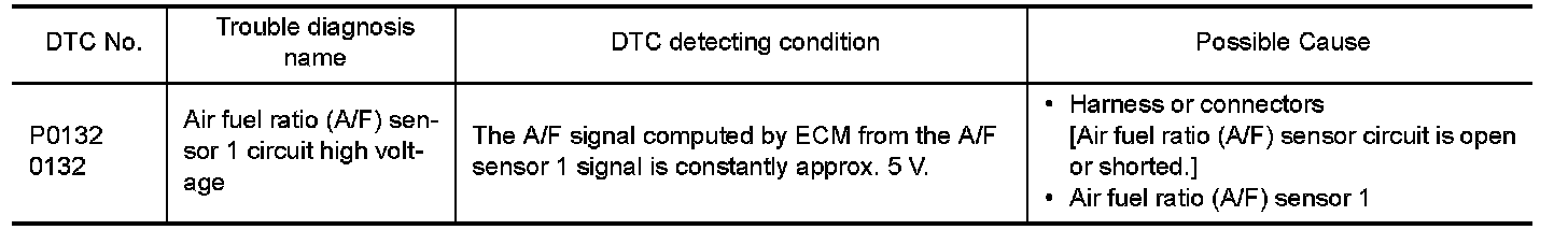 To judge the malfunction, the diagnosis checks that the A/F signal computed by ECM from the air fuel ratio (A/F) sensor 1 signal is not inordinately high.