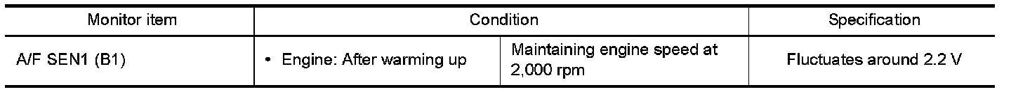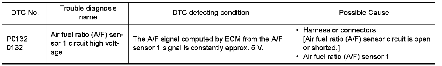 To judge the malfunction, the diagnosis checks that the A/F signal computed by ECM from the air fuel ratio (A/F) sensor 1 signal is not inordinately high.