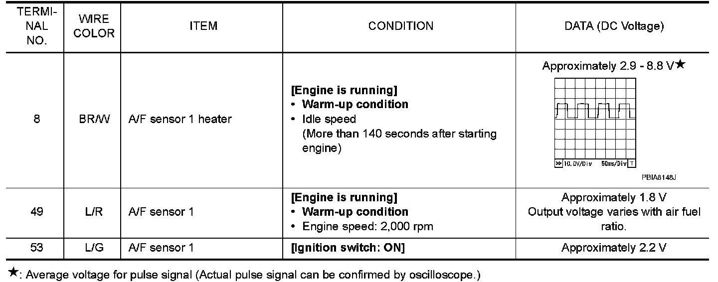 3. Check voltage between A/F sensor 1 terminal 4 and ground with