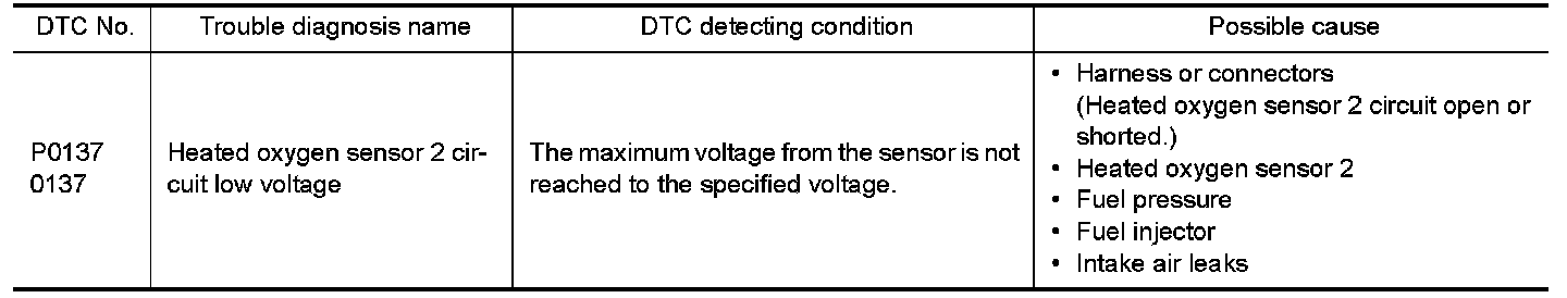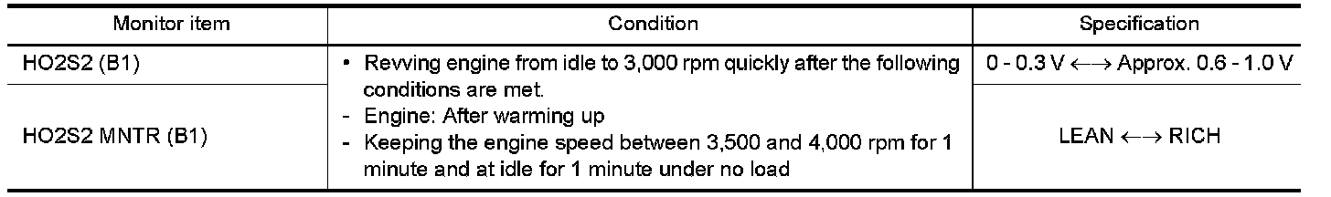 The heated oxygen sensor 2 has a much longer switching time between rich and lean than the air fuel ratio (A/F) sensor 1. The oxygen storage capacity before the three way catalyst (manifold) causes the longer switching time. To judge the malfunctions of heated oxygen sensor 2, ECM monitors whether the maximum voltage of the sensor is sufficiently high during the various driving condition such as fuel-cut.