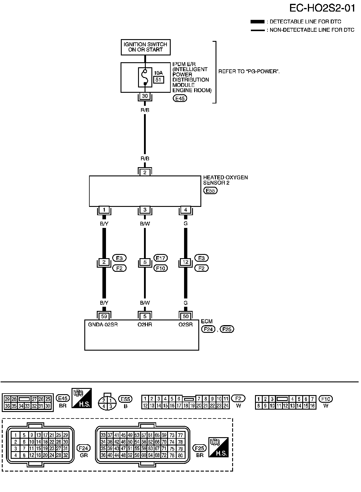 1. Check harness continuity between HO2S2 terminal 4 and ECM terminal 50. Refer to Wiring Diagram.