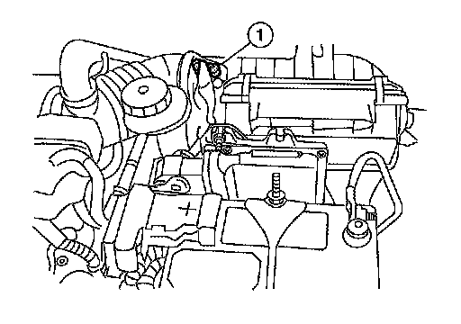 3. Disconnect mass air flow sensor (1) harness connector, and restart and run engine for at least 5 seconds at idle speed.