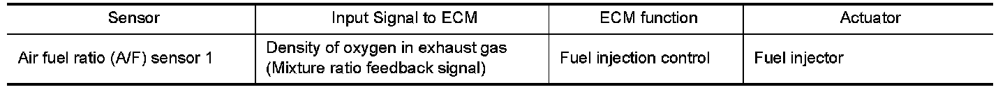 With the Air/Fuel Mixture Ratio Self-Learning Control, the actual mixture ratio can be brought closely to the theoretical mixture ratio based on the mixture ratio feedback signal from the air fuel ratio (A/F) sensor 1. The