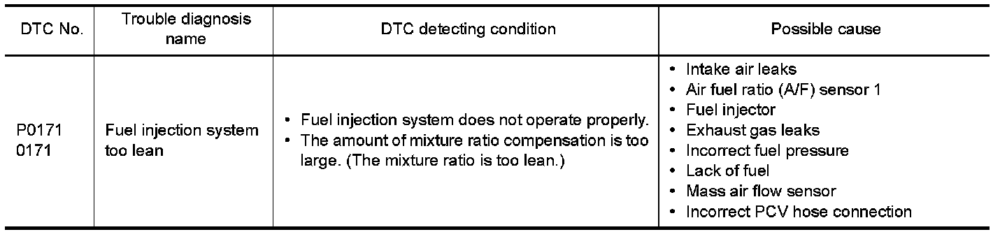 DTC P0171 FUEL INJECTION SYSTEM FUNCTION