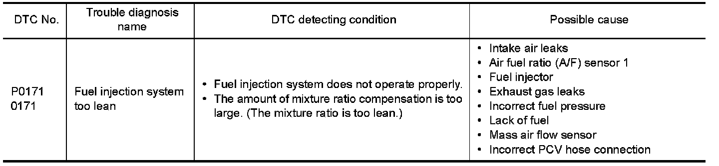 DTC P0171 FUEL INJECTION SYSTEM FUNCTION