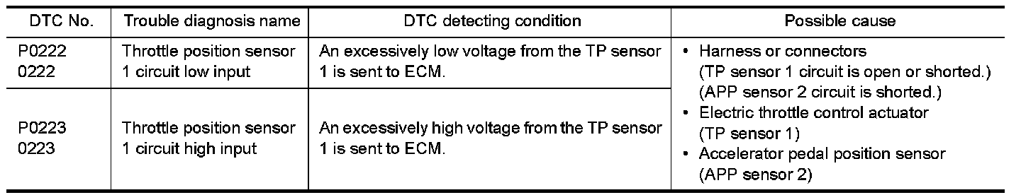 The throttle position sensor has two sensors. These sensors are a kind of potentiometers which transform the throttle valve position into output voltage, and emit the voltage signal to the ECM. In addition, these sensors detect the opening and closing speed of the throttle valve and feed the voltage signals to the ECM. The ECM judges the current opening angle of the throttle valve from these signals and the