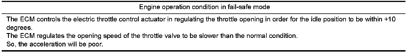 When the malfunction is detected, the ECM enters fail-safe mode and the MIL lights up.