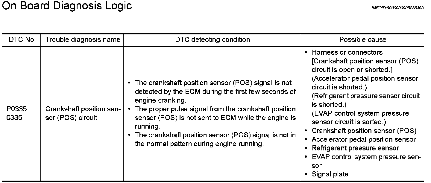 1. Check harness continuity between CKP sensor (POS) terminal 3 and ECM terminal 61. Refer to Wiring Diagram.