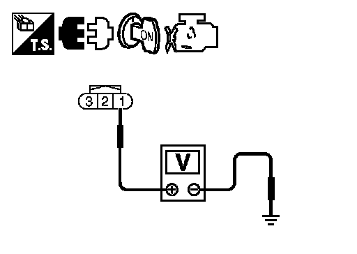 3. Check voltage between CMP sensor (PHASE) terminal 1 and ground with CONSULT-III or tester.