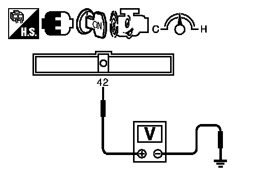 5. Set voltmeter probes to ECM terminals 42 (EVAP control system pressure sensor signal) and ground.