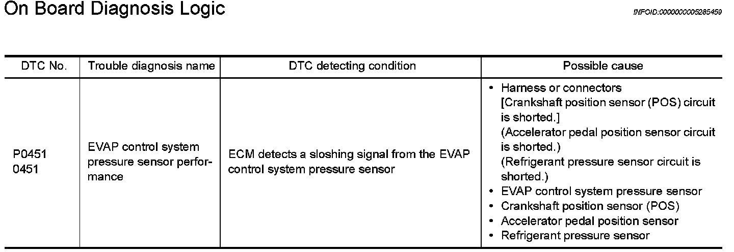 DTC P0451 EVAP CONTROL SYSTEM PRESSURE SENSOR