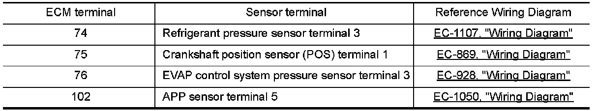 3. Turn ignition switch ON and check output voltage between ECM terminal 42 and ground under the following conditions.