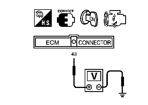 3. Turn ignition switch ON and check output voltage between ECM terminal 42 and ground under the following conditions.
