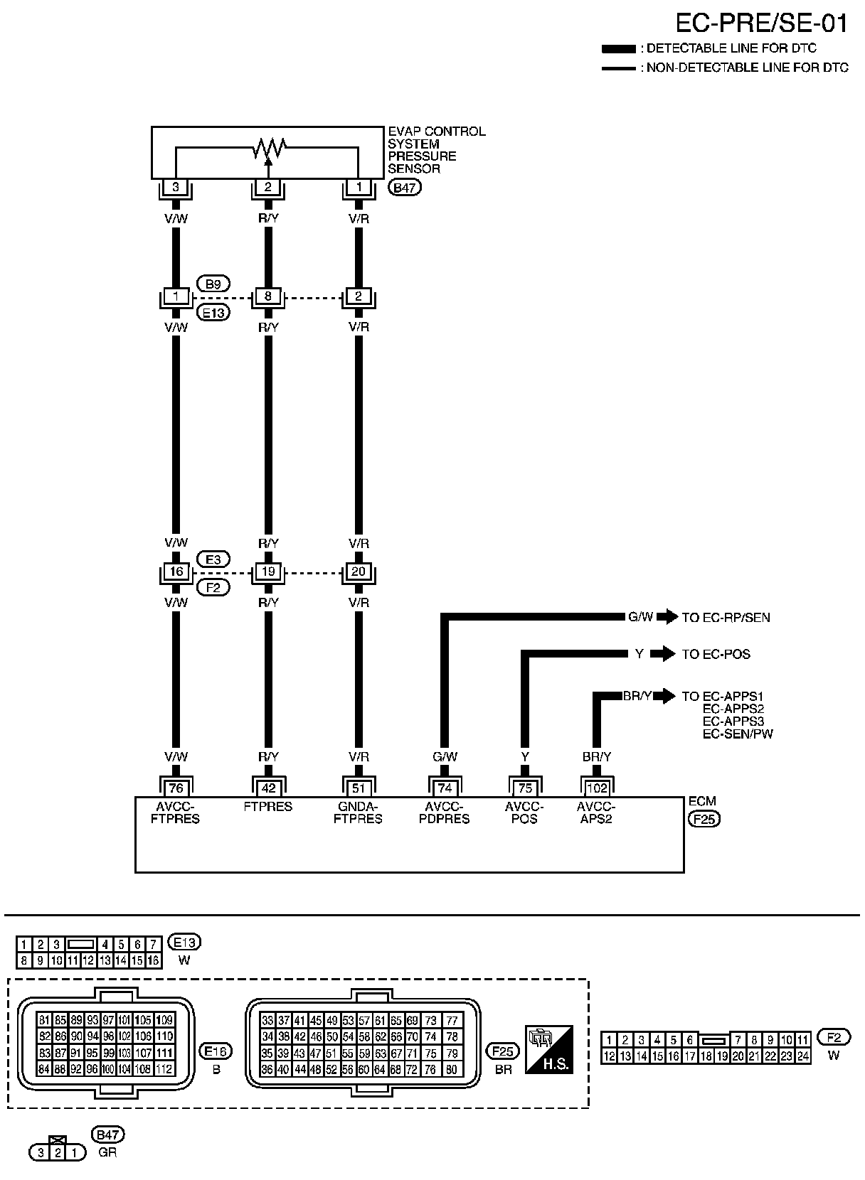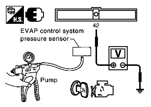 1. Check harness continuity between ECM terminal 42 and EVAP control system pressure sensor terminal 2. Refer to Wiring Diagram.
