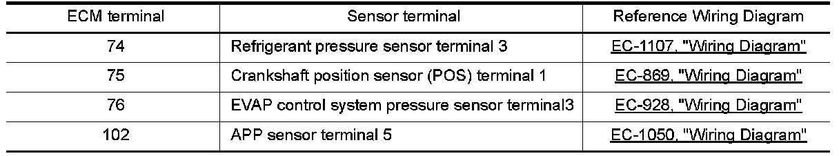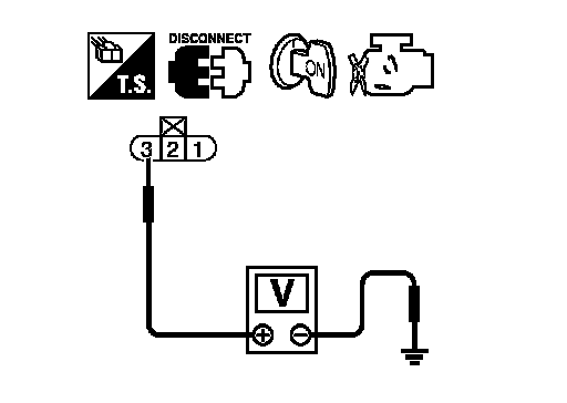 2. Check voltage between EVAP control system pressure sensor terminal 3 and ground with CONSULT-III or tester.