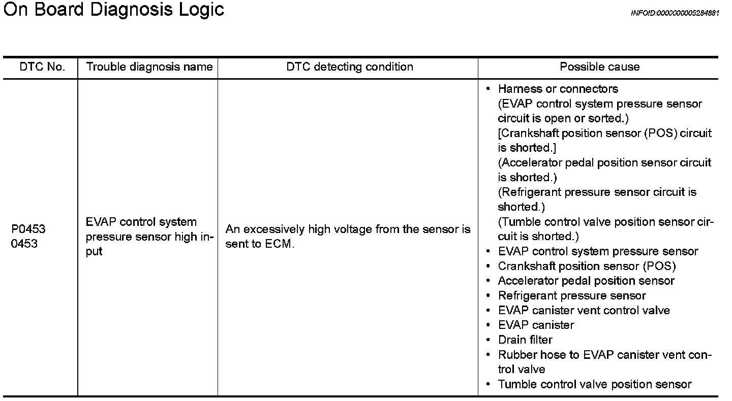 DTC P0453 EVAP CONTROL SYSTEM PRESSURE SENSOR