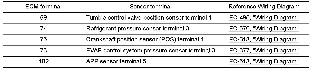 2. Check voltage between EVAP control system pressure sensor terminal 3 and ground with CONSULT-III or tester.