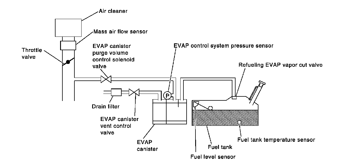 This diagnosis detects a very large leak (fuel filler cap fell off etc.) in EVAP system between the fuel tank and