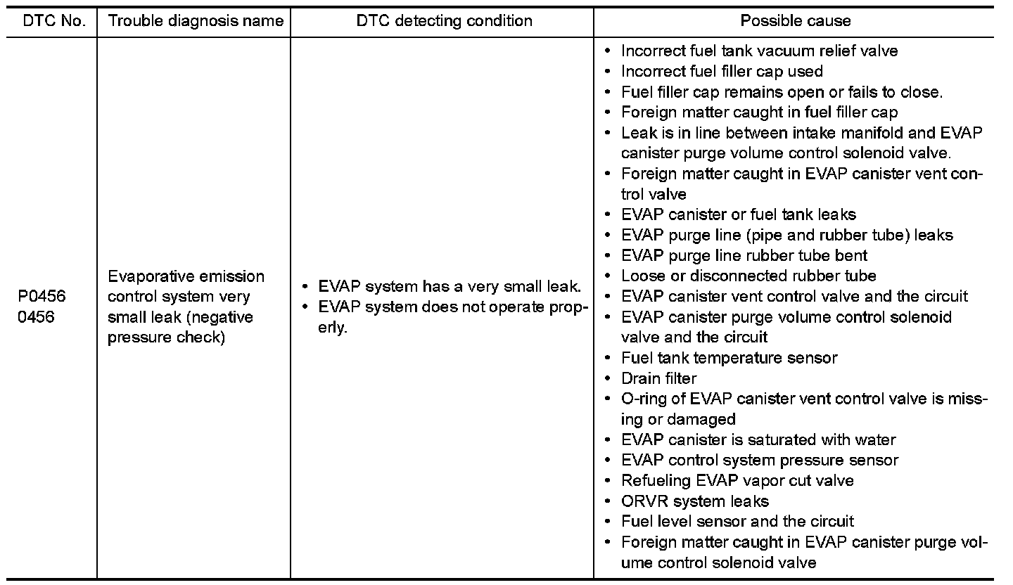 - If DTC P0456 is displayed with P0442, first perform trouble diagnosis for DTC P0456.