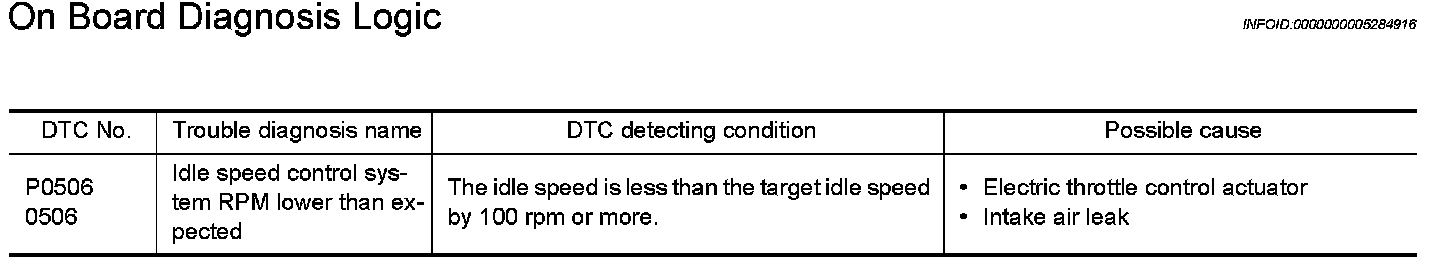 If DTC P0506 is displayed with other DTC, first perform the trouble diagnosis for the other DTC.