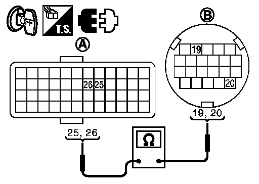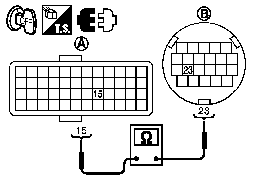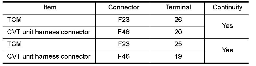 3. Check continuity between TCM connector (A) terminal and CVT unit harness connector (B) terminal.
