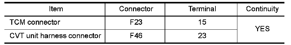 2. If NG, re-check TCM pin terminals for damage or loose connection with harness connector.