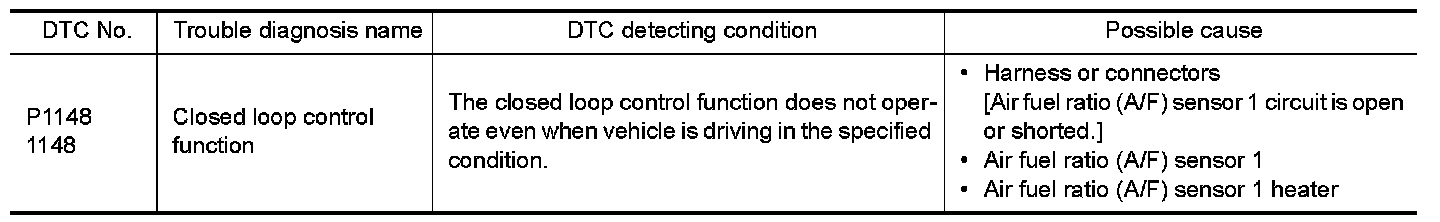 DTC P1148 is displayed with another DTC for air fuel ratio (A/F) sensor 1.