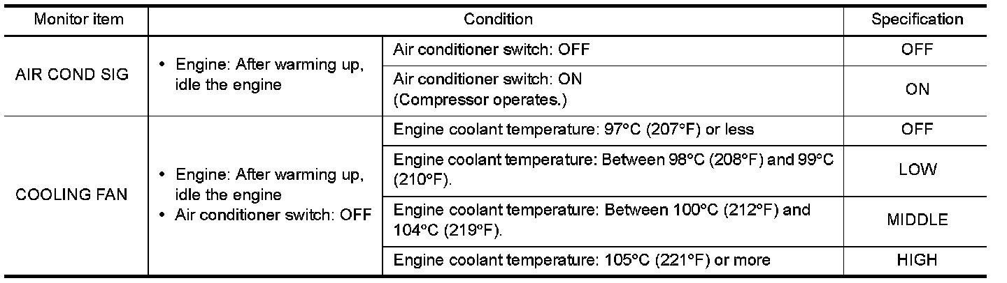 Use this procedure to check the overall function of the cooling fan. During this check, a DTC might not be confirmed.