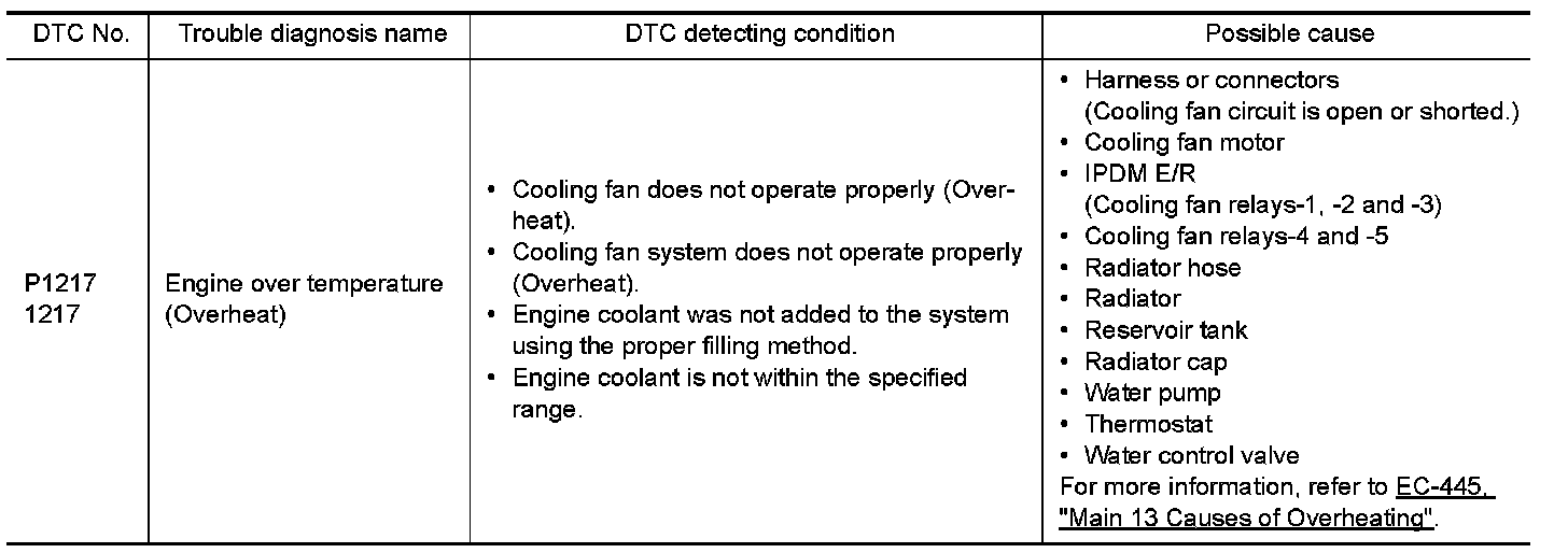 - If DTC P1217 is displayed with DTC UXXXX, first perform the trouble diagnosis for DTC UXXXX.