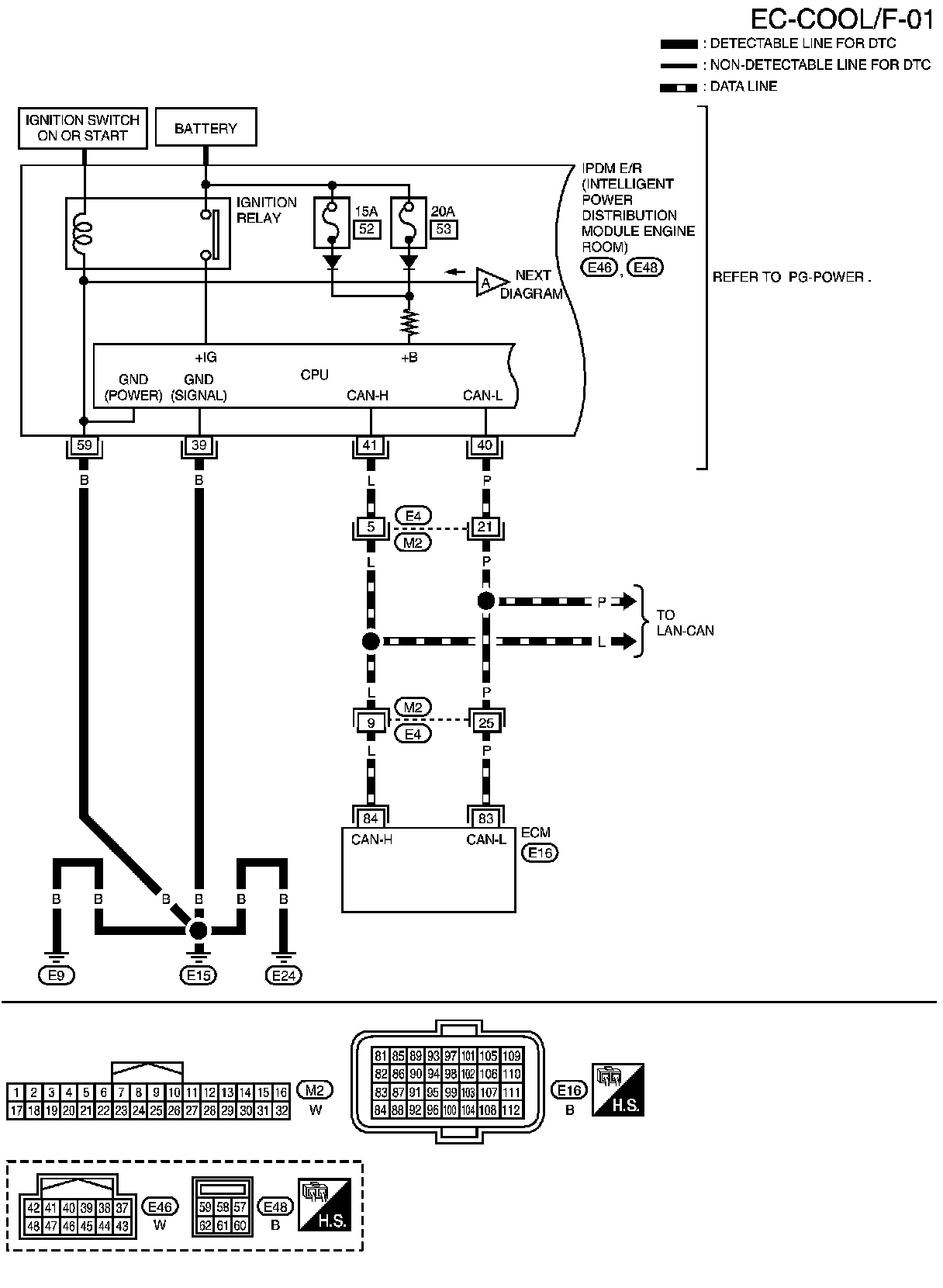 - Harness for open or short between cooling fan relay-4 and IPDM E/R