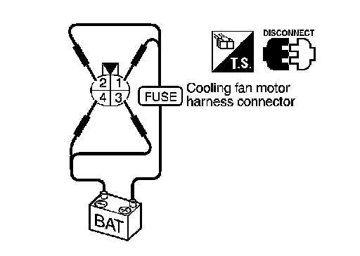 2. Supply cooling fan motor terminals with battery voltage and check operation.