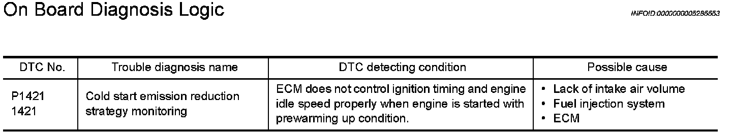 DTC P1421 COLD START CONTROL